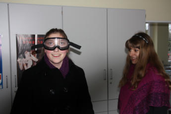 Clausen und Stefanie Leschnik über die „Promille Brille“, die den Alkoholgenuss simuliert.